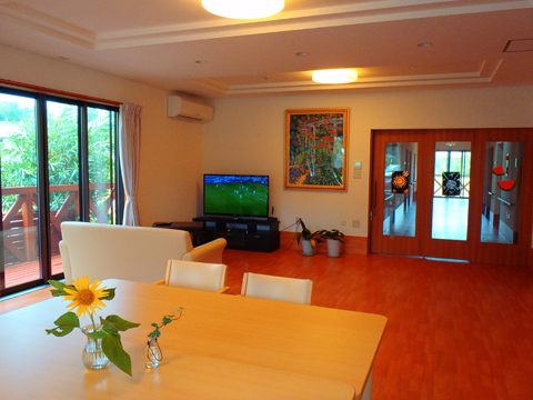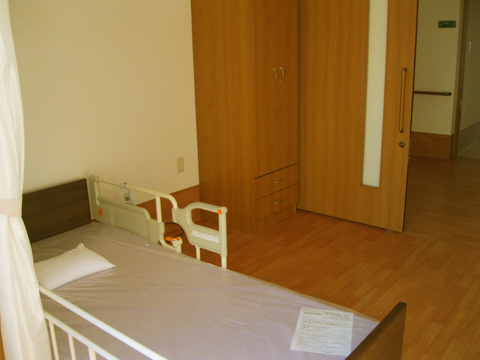 | 居室 | 個室(9平方メートル‥5部屋、11.5平方メートル‥4部屋) 介護用ベッド、エアコン、衣装タンス、ナースコール、換気設備。 共用設備:共同浴室(個浴)、多目的トイレ、エアコン、デイルーム、自動火災通報設備、スプリンクラー、洗面台。  |