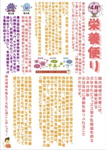 現在までに発行されたお便り「栄養便り」のバックナンバーです。画像をクリックすると、拡大されてご覧になれます。